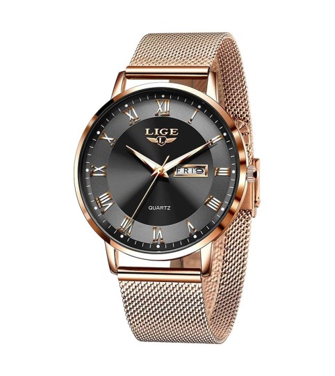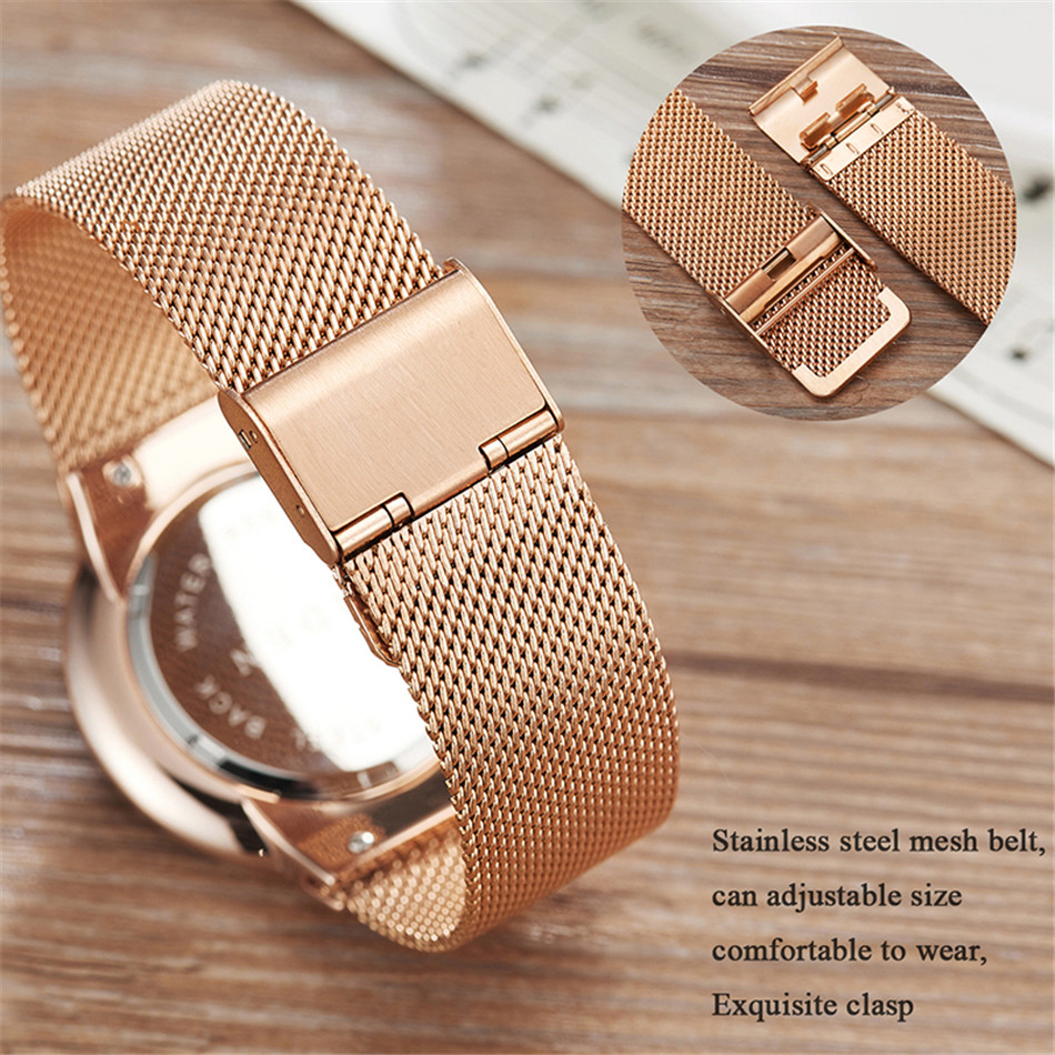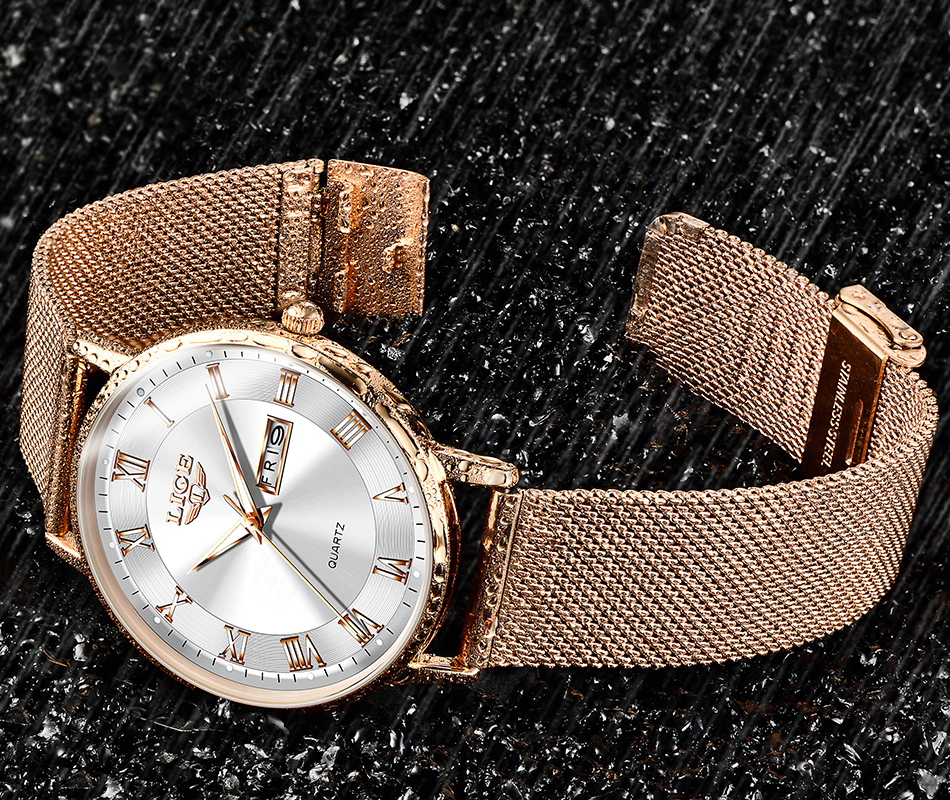 Le bracelet en maille d’acier inoxydable s’ajuste facilement à la taille du poignet pour un confort adapté. Sa fermeture assure un maintien fiable tout au long de la journée.