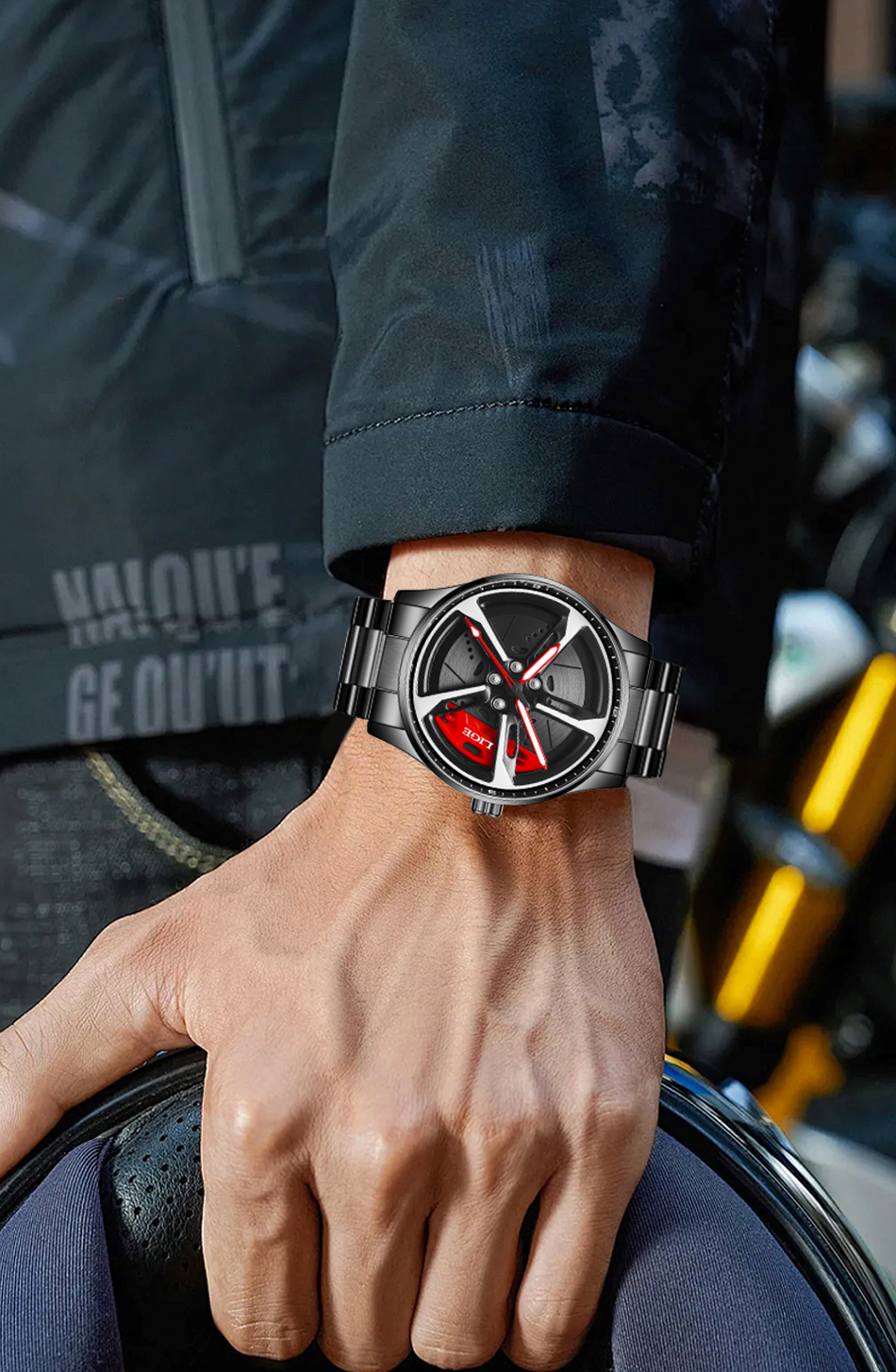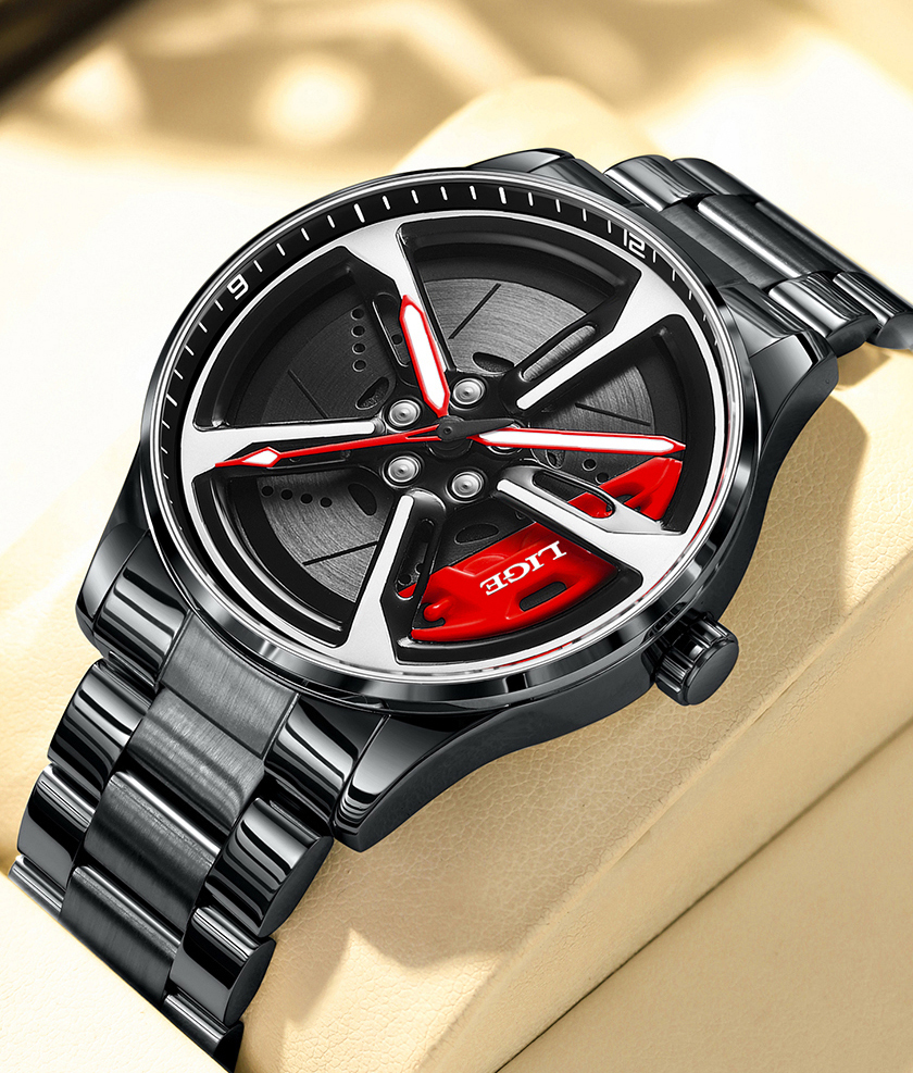 Ce modèle séduit par son style sport chic et son cadran rotatif inspiré des roues automobiles. L’allure moderne s’accorde parfaitement avec les tendances actuelles des montres homme au style luxe.