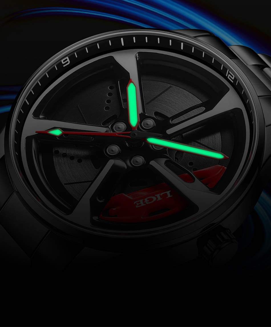 Le revêtement lumineux sur les aiguilles et les index assure une lecture facile de l’heure, même dans l’obscurité. Cette fonctionnalité améliore le confort d’utilisation de jour comme de nuit.