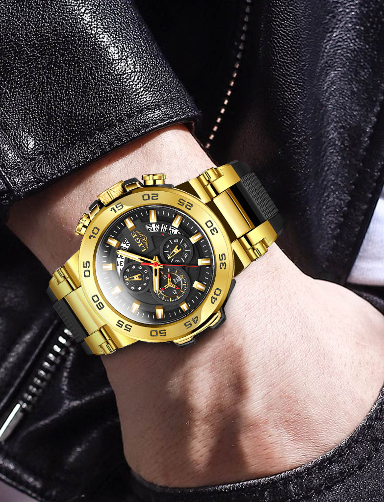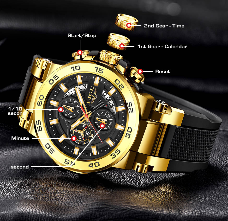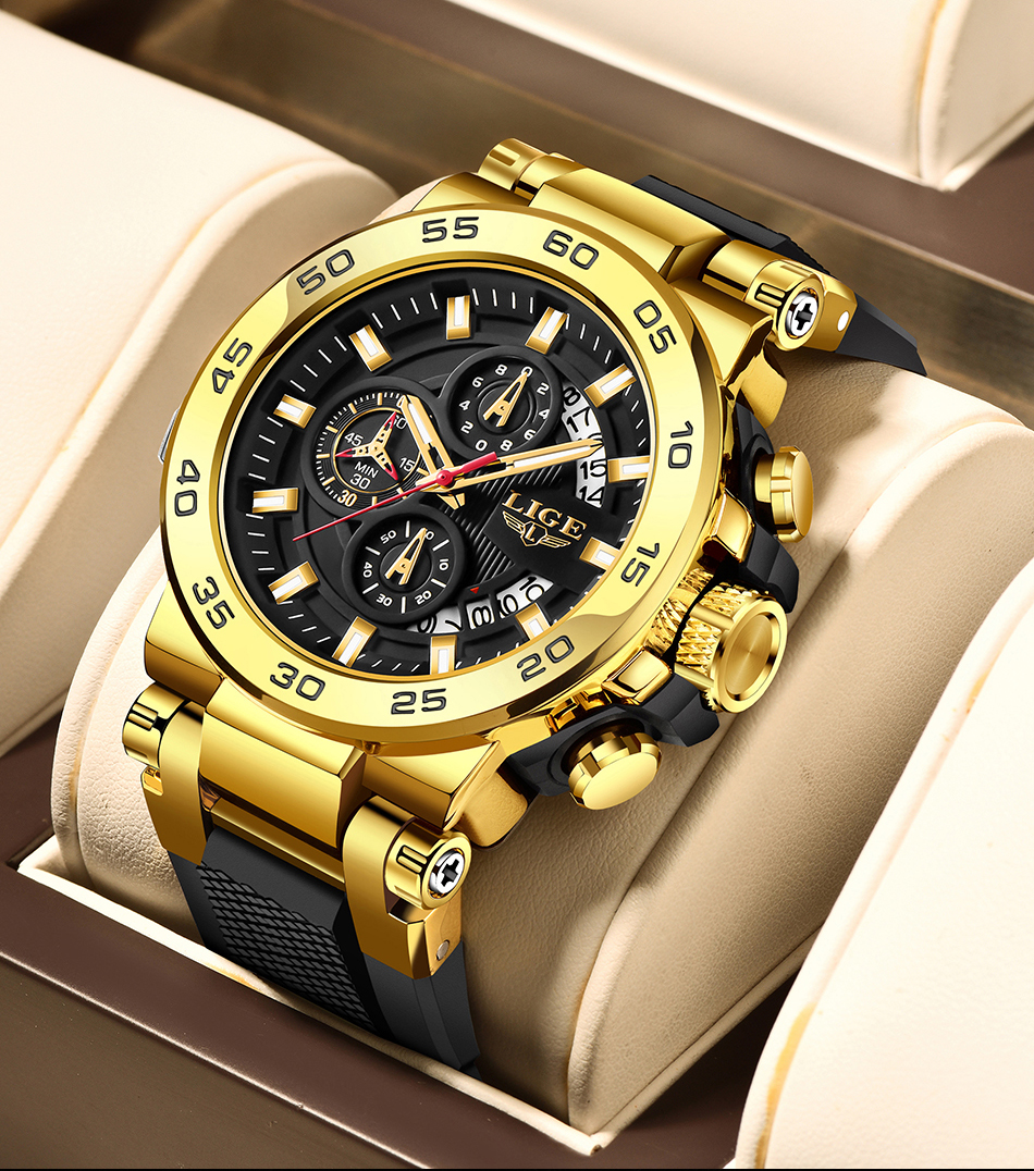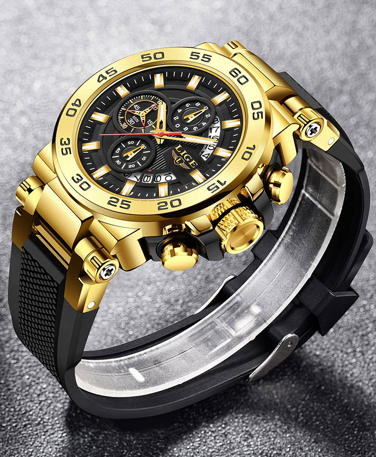 Le boîtier de 46 mm offre une présence marquée au poignet, tandis que le verre renforcé assure une excellente résistance aux chocs. Le bracelet en silicone et la boucle ardillon garantissent un maintien fiable et un confort durable, même lors d’un usage quotidien.