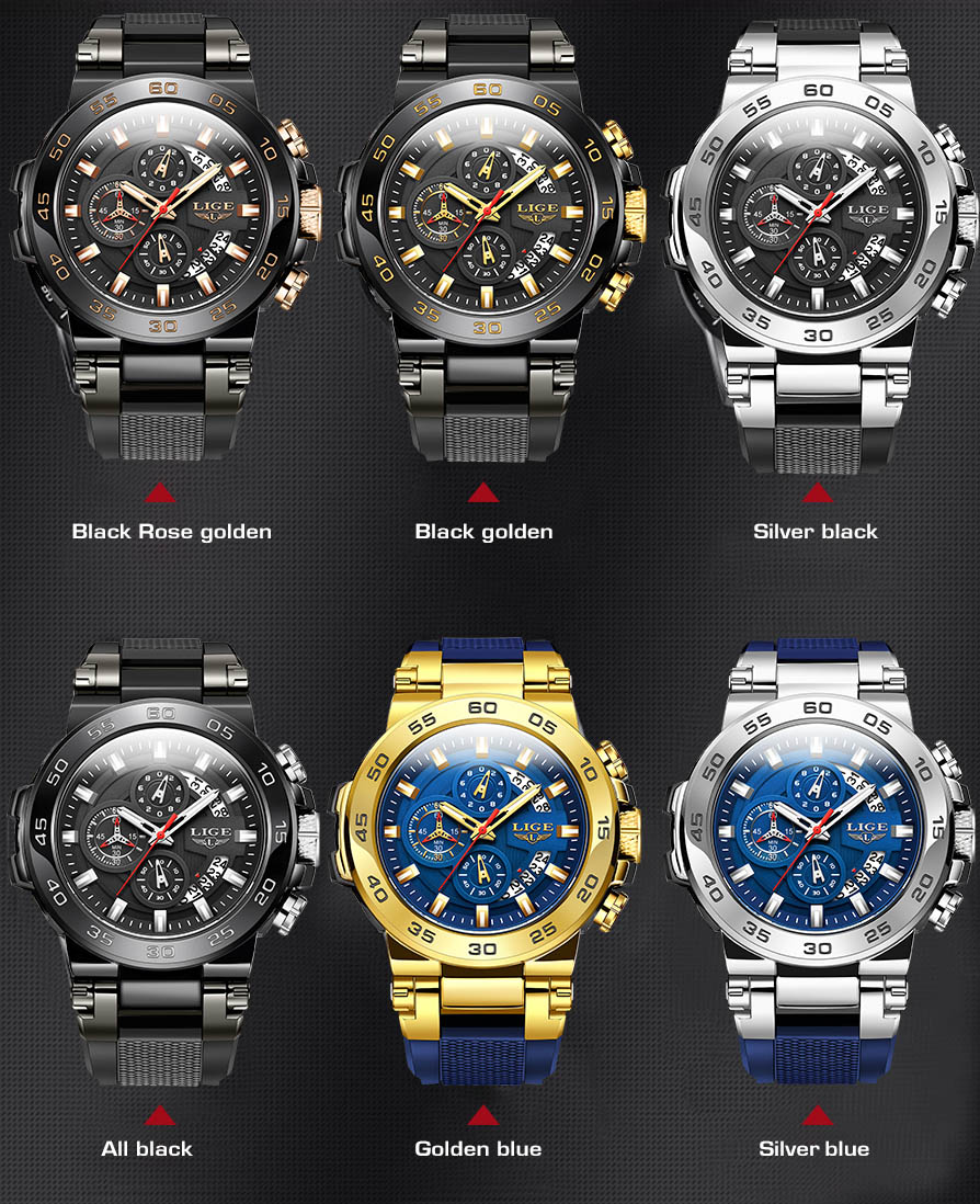 Cette montre est disponible en plusieurs coloris, du noir classique au bleu élégant, pour s’adapter à tous les styles. Les différentes finitions permettent de personnaliser votre look selon vos envies et vos tenues.